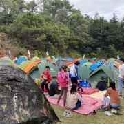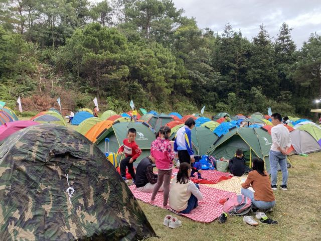 夜晚我们大家都在景区露营,人多非常热闹好玩,很多人都带了野餐垫过来坐下一起打牌说说笑笑