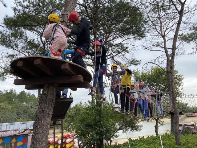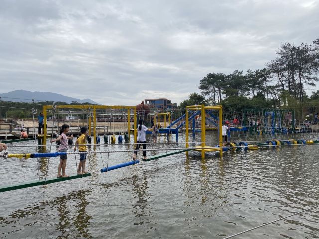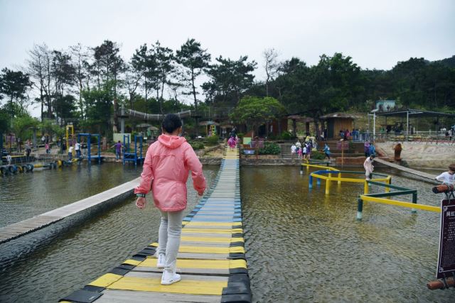 接着又玩了水上拓展、多人秋千、摇摆桥,让人乐趣无穷