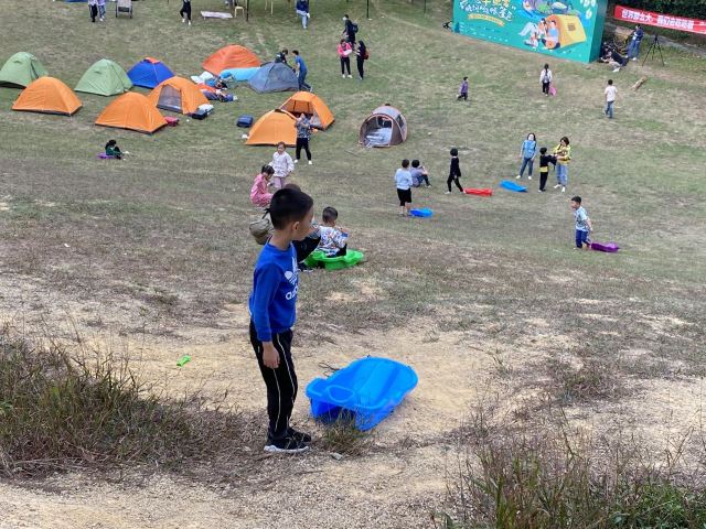 翻过山就是一片空旷的滑草场,1000多平方米、落差达30多米,景区还有提供滑草道具,从起点到终点,整个过程让你尖叫、让你飞一起在丰茂的草坪上感受风驰电掣的快感