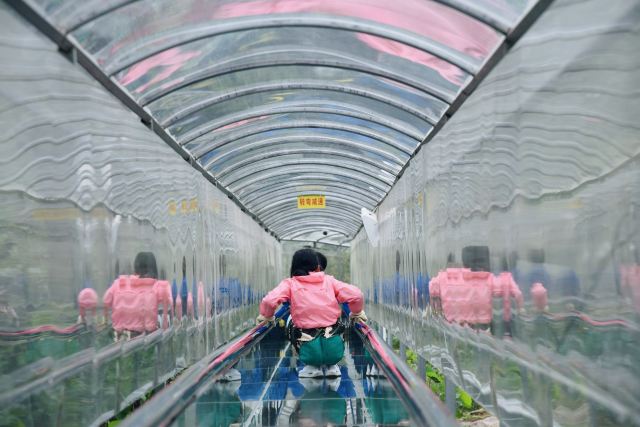 我们去玩了世界最长的悬空玻璃漂流滑道,长达1780米,离地最高13米,360回旋漂流道,落差高达100多米一年四季都可漂的空中漂流,在世界上最长的悬空玻璃漂流滑道上,一年四季都可以玩的空中漂流,还不容易湿身。漂流非常适合大人和小孩一起玩,非常安全,不会太过刺激,也不用怕像其他漂流会被旁边伸出来的树枝划到手。景区提供免费的防水衣,有上下两件,全方位包裹着,完全不怕被弄湿衣服