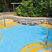 度假区内山峦起伏,树木葱茏,空气新鲜,出水相拥,1670万平方米有林面积的银盏林场和83万平方米水域的银盏水库,实为珠三角地区一个难得的“天然氧吧”。于此度假休闲,一如置身于“世外桃源”,感受放松与愉悦。巧夺天工的开放温泉浴场与座座温泉别墅临山而立,融入秀美的大自然,温泉浴包罗万象,温泉石板炕、光波浴、香薰浴、按摩池、温泉游泳池、儿童游乐池等,共计81泉。