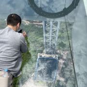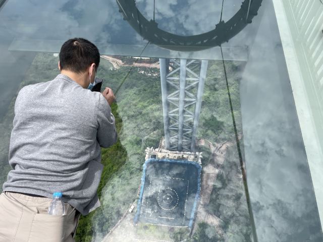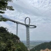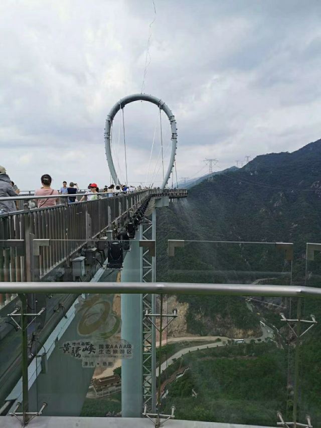 黄腾峡天门悬廊整体由山体伸出直线长度约368米,仅外侧单柱悬挑的环形悬廊长度既达168米。旅客前往玻璃廊桥,大部分是为了获得惊险刺激的高空体验。悬廊外侧处于漂流河道上方,离地垂直高度达500余米,震憾的高空落差及透明玻璃,带给游客无限的惊险体验,真正达到一步惊心,步步惊心。