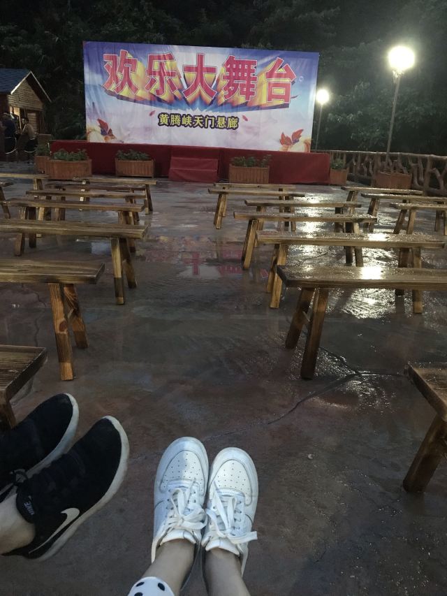 站立于黄腾峡天门悬廊上,透过玻璃俯视下方,峡谷中一切景象清晰可见,北侧可观黄腾峡漂流大峡谷的原始峡谷风光,南侧可赏清远市区高楼林立的城市风貌,西侧则可见晚霞红满天的落日辉煌。如遇云雾天气,整个悬廊矗立于云雾之上,煞是壮观,自身则如临天门,步入仙境。