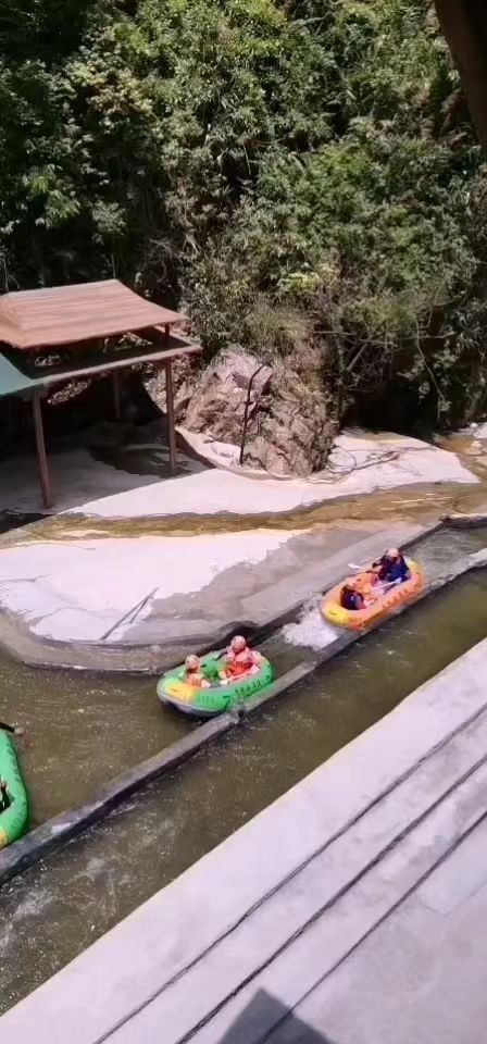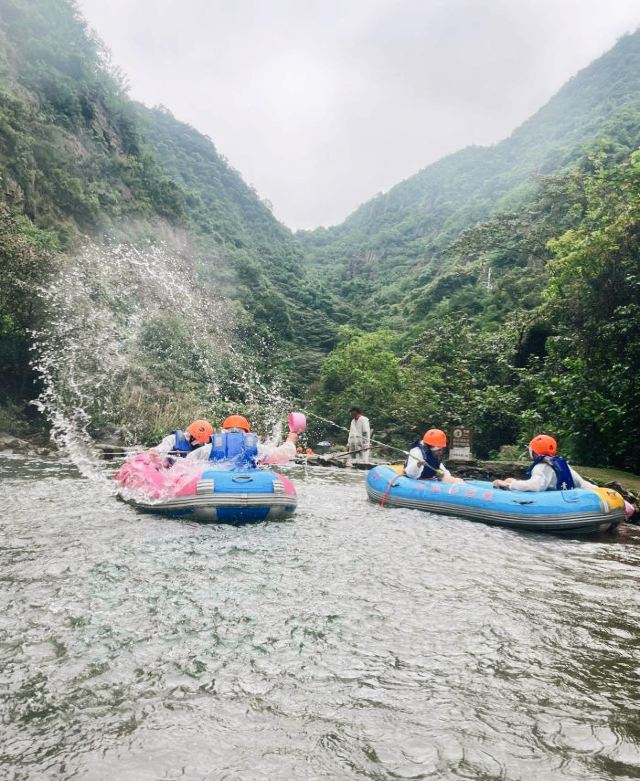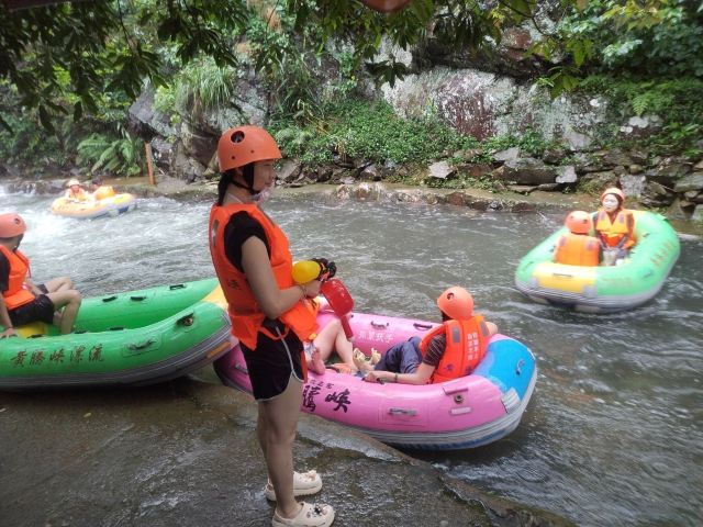 观景勇士漂,漂流河道的下游漂段,漂时约60分钟,勇士漂刺激好玩,老少皆宜。勇士漂的游客可享受到翡翠三叠、神龙赐水、银珠落玉盘、曲水回环、群龙戏水、双龙出海等位置驾驭快艇般的体验,同时观赏峡谷美景,感受亲水狂欢打水仗的乐趣。(提示:1.2米以下60岁以上的游客请勿参与)