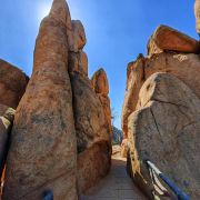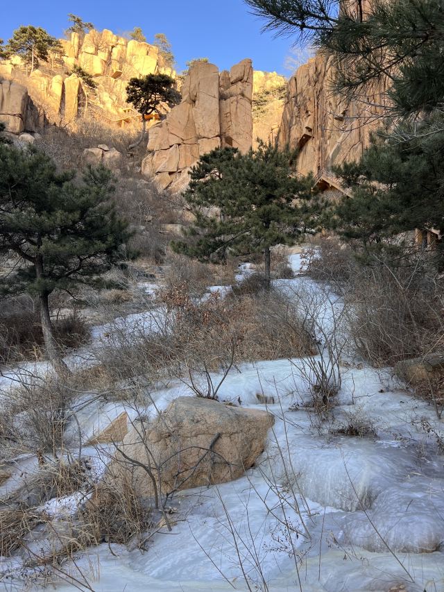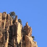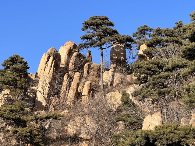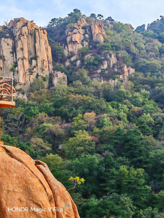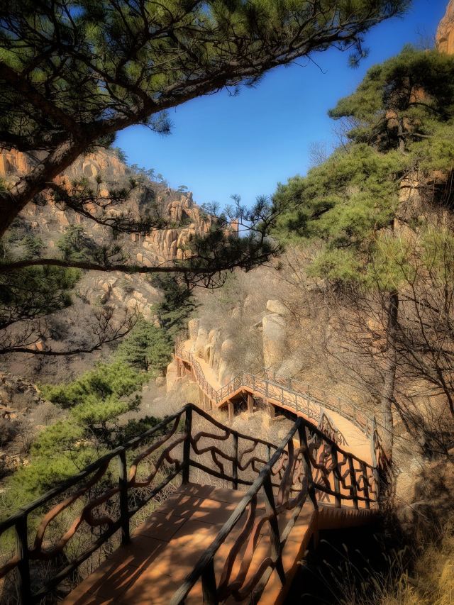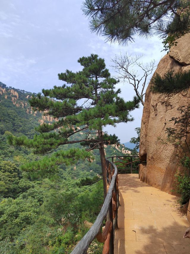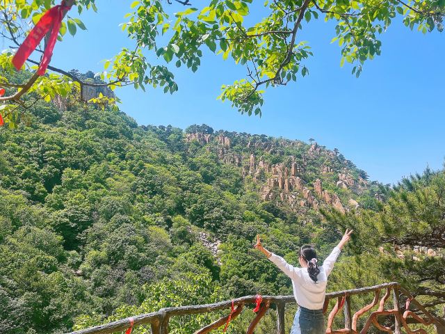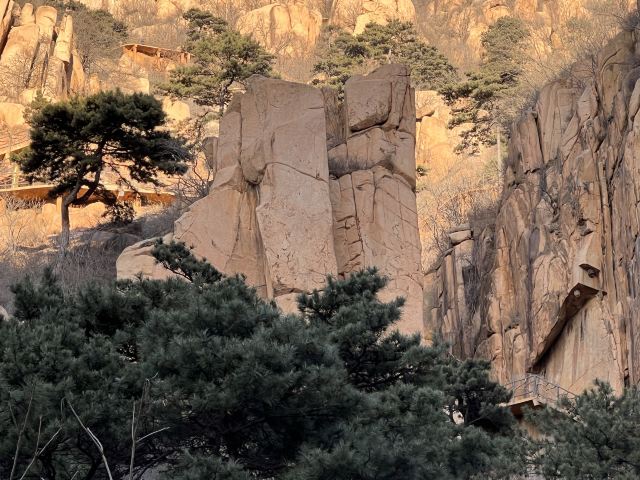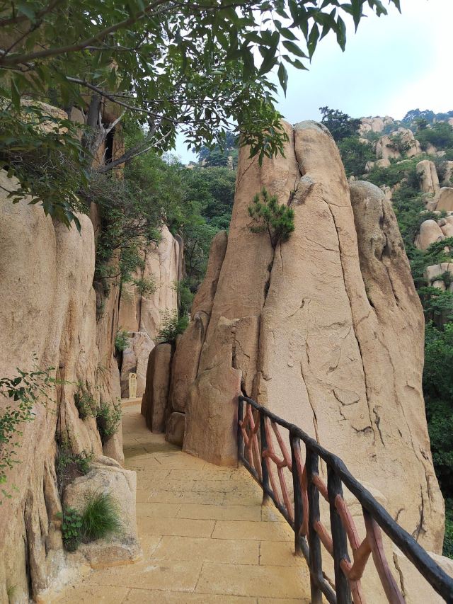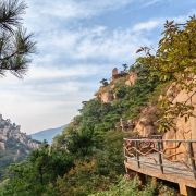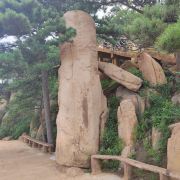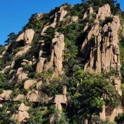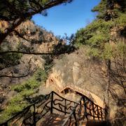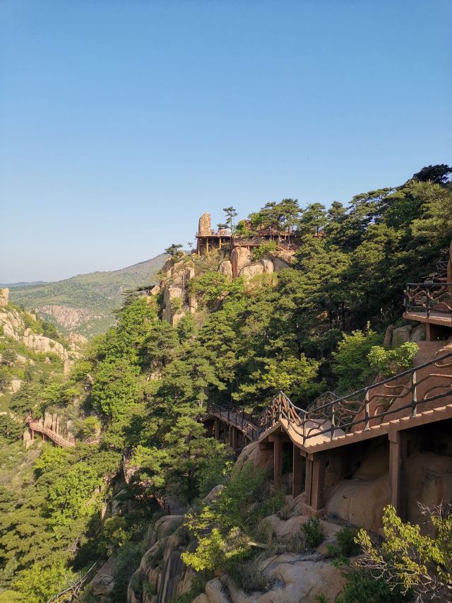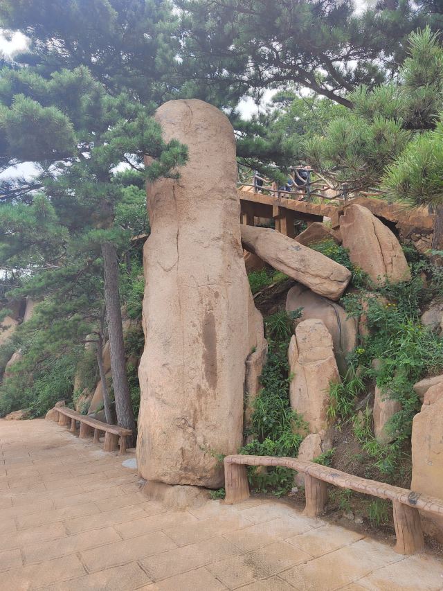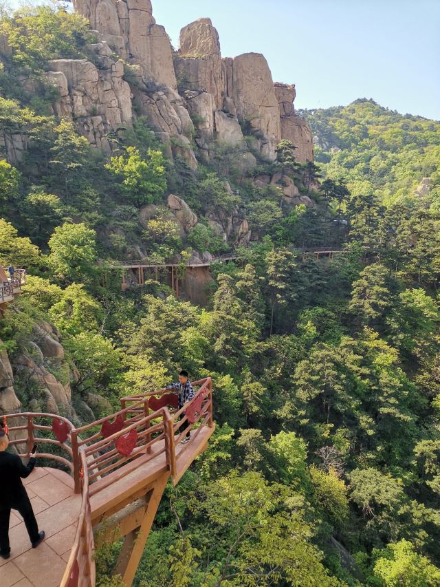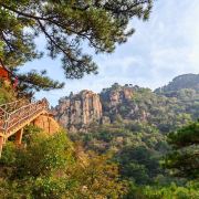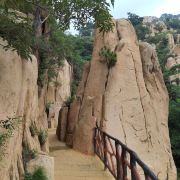 燕山石林风景区位于秦皇岛市抚宁区大新寨镇, 自然山岳景观别具一格 ,奇 峰怪石, 峰峰是景,林海松涛 ,美不胜收 ,一经 发现便声名大噪 , 是一个被大自然 “雕琢 ” 成艺术珍品的地方 ,有 “小黄山” 之称。燕山石林山谷两侧象形石吉祥灵秀 、 崖石陡峭嶙峋 。 诸多 怪石 、 巧石错落林立 , 造型独特 , 或直立 、 或倾斜 、 或如人形 、 或如兽状 、 千姿百态 ,形态各异 ,令人目不暇接。景区在保留原始自然景观的基础上 , 巧妙融入了人文景观“ 悬空栈道” 。该栈道依山势 而建 ,全长3300米 , 采用悬崖凿壁工艺 , 蜿 蜒于峭壁之上 , 分为上下两层穿行于峭壁岩 石之间 , 中间设立了多个全方位观景平台 , 奇石林立的壮丽景色尽收眼底。