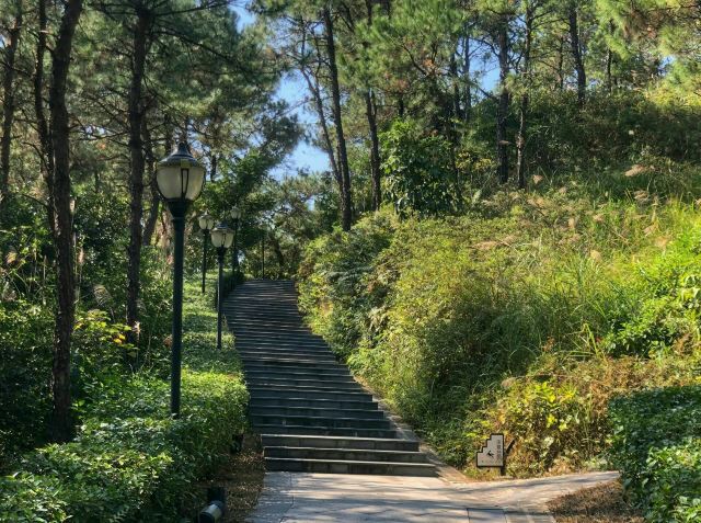 5分 超棒这里是钦州园博园.我们到这里已经是下午六点了,太阳已经差不多要下山了。这里是刚进门口向右转的小路上。从这里可以看出,这个园博园还是挺大的。这个时候没看到要买门票,应该是下班了。可以看到许多大人带着小孩在玩,估计是附近的居民。这么大的园林,值得观赏。