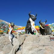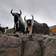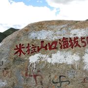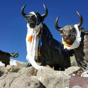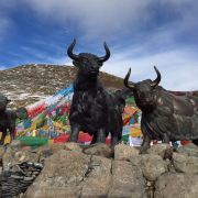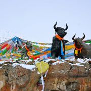 5分 超棒继续前行,下午大约4点多钟到达墨竹工卡县,途经著名的米拉山口。米拉山口实际海拔为5013.25米,这里是拉萨——林芝旅游线上的一个休憩之地。米拉山口位于拉萨墨竹工卡县与林芝工布江达县界上。在山口处,矗立着一座标有“雪域之舟”的西藏耗牛石雕像。在蓝天白云下,这座雕像是那样显眼,它是米拉山唯一的标志性建筑,它同时也成为米拉山的一个历史见证。米拉山是雅鲁藏布江谷地东西两侧地貌、植被和气候的重要界山。米拉山以西地区气候干燥寒冷,以东地区气候温暖潮湿,植被茂盛。这一特征十分明显。米拉山因其高大雄奇而成为此地藏民心目中的神山,山口上挂着大片壮观的风马旗,地上遍布着抛洒的印有经文的隆达纸。