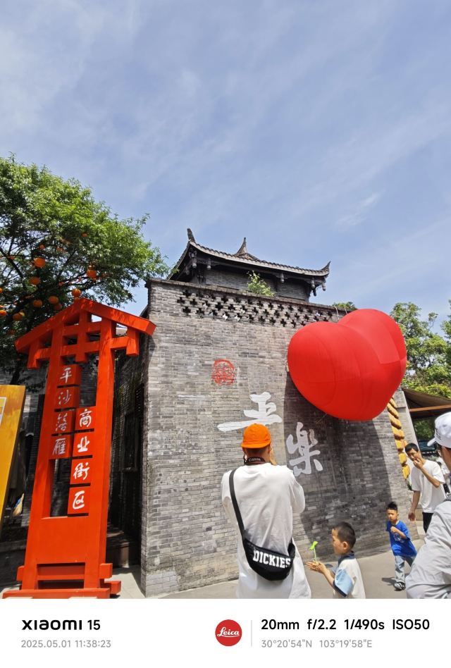 平沙落雁街区的火星浮雕充满科幻感,和古街形成奇妙碰撞;乐善桥上的熊猫气模萌翻全场,桥头还能get“古镇+远山”的治愈构图。酒街的文君相如气模CP感十足,搭配“花房姑娘”墙绘和“好久不见”歌词墙,文艺青年直接原地封神!长庆街的爱心树自带浪漫buff,新兴街的“乐活平乐”打卡墙更是元气满分,九宫格根本不够发~