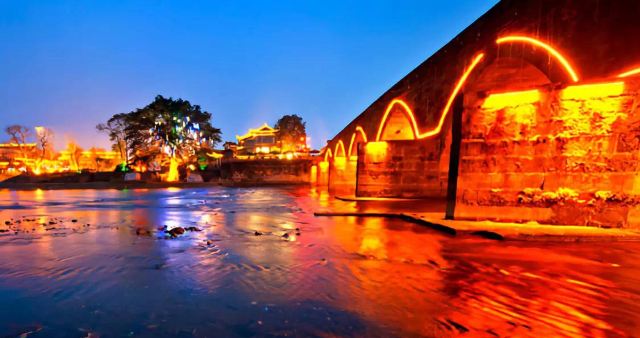 平乐古镇位于邛崃市西南部,以生态的川西古建筑和古朴的民风而著称。白沫江自西向东流经古镇,江畔的千年古榕、沿江吊脚楼和水码头、青石板的街道和店铺,还有横跨白沫江的“乐善桥”,都展现了平乐古镇的风采。早在汉代,平乐古镇就已形成集镇,相传卓文君和司马相如演绎的“凤求凰”就是发生在此处。古镇的主街乐善街,是水景风情街,街的尽头就是乐善桥,建于清同治元年,为七孔石桥,桥洞一改普遍的半圆型,改用桃型,堪称川西一绝。古镇保留着明清时期的古民居,古街两边的房屋多数为一楼一底的木结构建筑,一般为下层作铺面上层作居室,体现了浓郁的川西风格。古巷中藏着许多好吃的店铺,奶汤面是平乐一绝,还有汤白肉、钵钵鸡、石磨豆花等各色美食都记得要去品尝一下。江边休闲白沫江穿古镇而过,沿河两岸有许多农家乐和茶馆,是古镇繁华和热闹的地方。坐在岸边的凉棚下喝杯茶,很是惬意。河里时常有茶船停泊,每船50元/小时,送四杯茶。古镇附近可玩的地方也很多,镇外的金鸡谷户外运动基地可以玩攀岩和速降;古镇西部有万亩竹海和仿建的古代造纸坊,可以观赏古老的造纸术。这些景点距离古镇都很近,有半天时间即可玩遍。