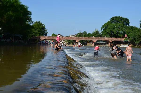 第一天,在河水的哗哗声中落下帷幕,后面几天,内容大致定下来了。早上客栈不提供早餐,睡到自然醒,去随便找一家奶汤面当早饭,味道都不会差,然后客栈后面打水仗。下午夕阳西下的时候,坐在河边看看日落,然后去饱餐一顿,晚上开车去芦沟竹海看看萤火虫,就差不多了。