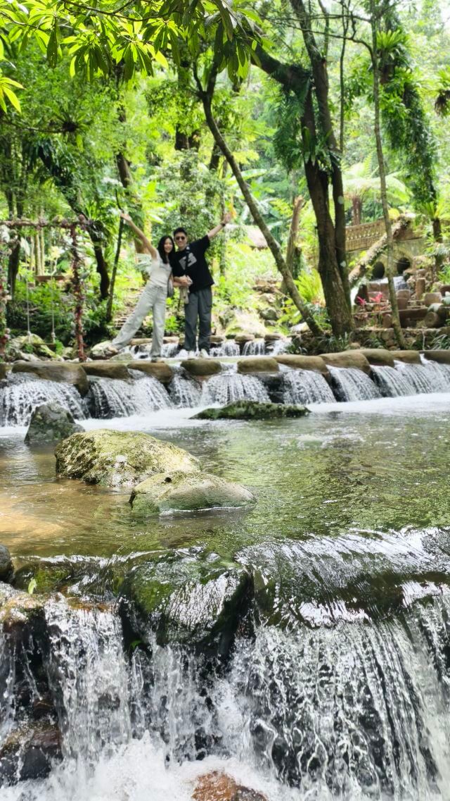 ✨爱情谷:这里大致景观就是小桥流水、小瀑布,各种奇石古树,既秀气又有些神秘,有种杨幂演的十里桃花林的感觉,有条件带古装的小可爱真的可以试试!或者画个热巴的凤九妆!超级搭!