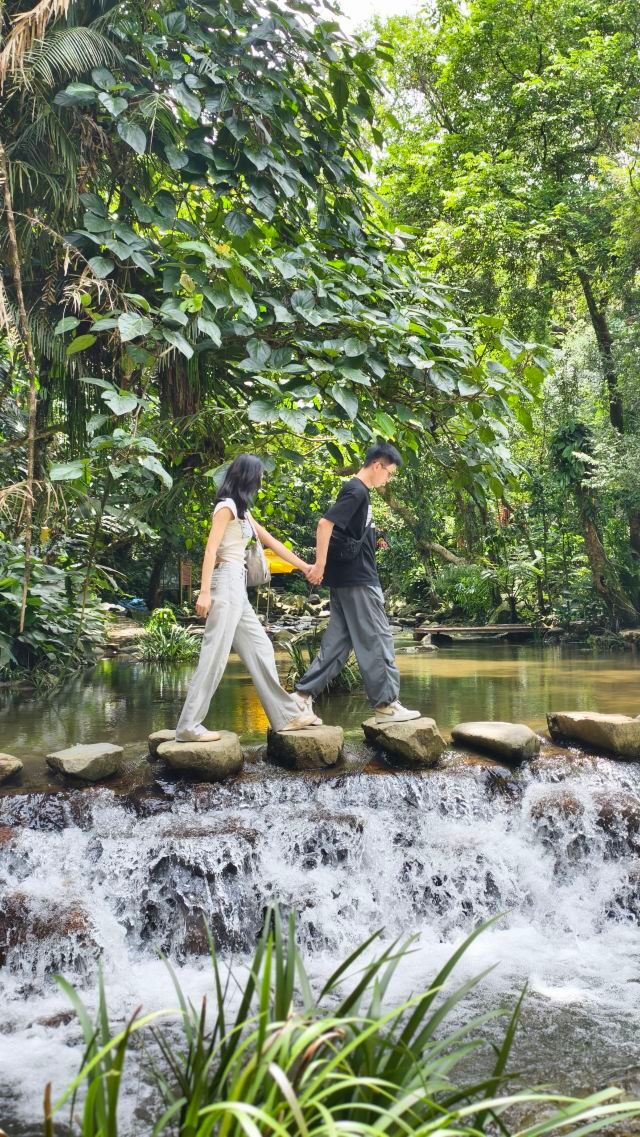 当然景区除了标志的漂流外,还是一个天然氧吧,让人们在体验“速度与激情”之余,呼吸着醉人的空气,沉浸在原始的热带丛林之中,感受自然之美。瀑布、天池、古树都让人感受到一种内心的宁静,坐在景区的小桌椅上歇脚,听着大自然的美妙声音,真的好不惬意!