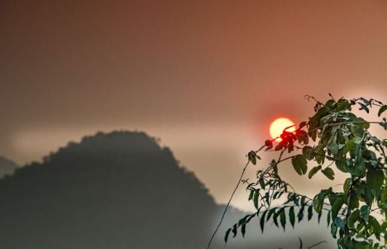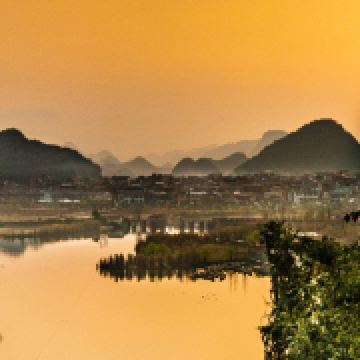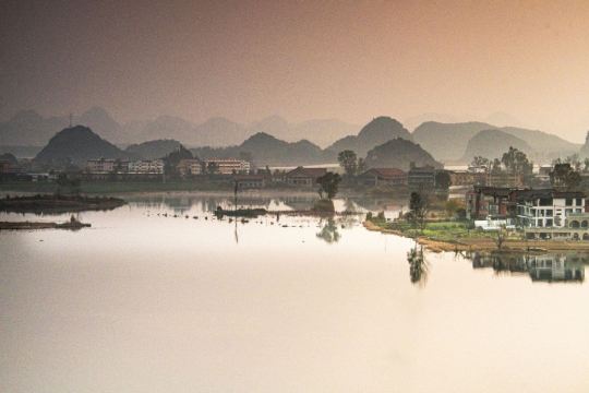 ✅如果等不及开日落,可以三点左右就上山,那时候的太阳光是照进普者黑村及后面的群山范围最大,光照最充足的时候,过了时间有些山脊的光照就暗淡了