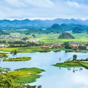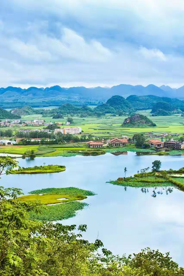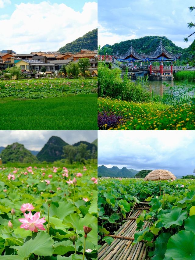 普者黑村以其独特的喀斯特地貌和秀丽的自然风光吸引着众多游客。这里的湖泊、山峰和田园风光交织在一起,形成了一幅如诗如画的景象。普者黑意为“鱼虾多的池塘”,村庄四周环绕着清澈的湖水和翠绿的山峦,是体验自然之美的理想之地。