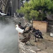 3、我沿西侧山路上山,途径“古灯博物馆”(不开放,但小村寨建筑颜值颇高)、“开化寺”(连同旁边的“铁佛殿”都不开放,室外具有千年历史的“连理塔”很罕见,是拍照打卡点)、“塔林”(高僧圆寂后建造的石制佛塔,塔林分上下两层,旁边有文物石碑)和“净池”(流水形成的小水池,池中央有石鲤鱼)后,再上一段石梯便到达蒙山大佛。塔林附近有棵杏树下,熟透的杏掉的满地都是,成为松鼠的美餐。