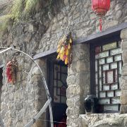 6、步行下山可从另一角度将坐车上山时两侧的景观重温,沿着阶梯式小河走,途径“土地庙”拜了拜,附近的蓝色岩石很有特色,景区入口处餐饮价格很平民化。能进的景观都走遍耗时3.5小时。