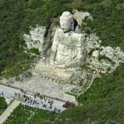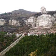 蒙山大佛,又名西山大佛,位于山西省太原市西南20余公里处的蒙山景区,始建于北齐天保年间,距今已有约1500年的历史,是中国北朝时期大体量的摩崖大佛和佛阁。原是蒙山开化寺后的摩崖佛像。唐高祖李渊、唐高宗李治与皇后武则天、后唐武皇帝李克用、后汉高祖刘知远都曾来此礼佛。元朝末年,蒙山大佛被毁,1980年的太原市地名普查中,蒙山大佛被重新发现,但佛头已不知去向,现在的大佛头部为后人新凿的。