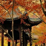 寺内古建筑群:红墙青瓦与银杏、枫叶交织,古刹秋色极具禅意257。