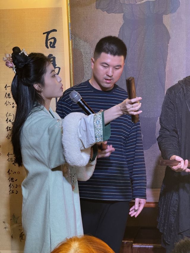 南音互动环节,拿起老师递给的四块小小的竹板——南音四宝,还有陶瓷酒盏。在老师耐心的指导下,都可打出清脆的响音。那一刻,仿佛能感受到千年前的匠人之心。