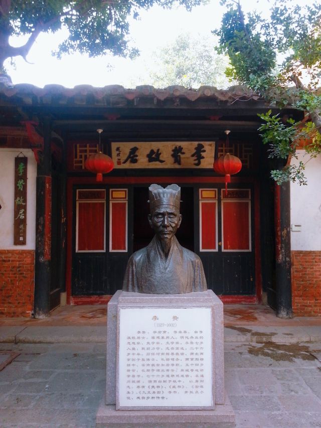 李贽(1527-1602年),字宏甫,号卓吾,是明代著名的思想家、史学家、文学家。他的故居原为一座普通民房,后人将其居室改为宗祠。近年来,李贽故居经过修葺,辟为纪念堂,室内悬挂李贽画像,以供瞻仰。