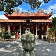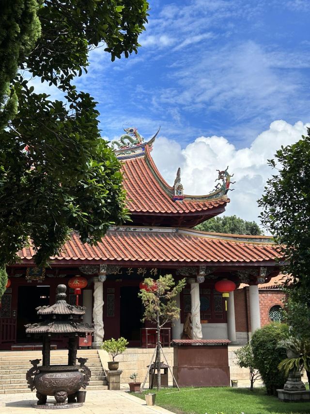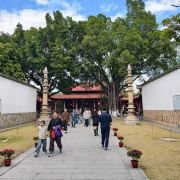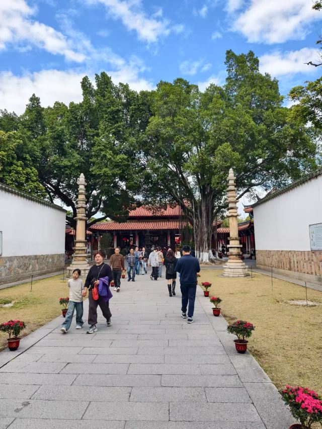 寺中植有榕树、柳树、龙眼树、白内叶树等二百多棵植物,掩映于各座殿宇楼阁之间,浓荫遍地。漫步在这清净的环境中,做一次闲人,感受悠闲自在。寺庙中还有些鸽子,并不怕人。