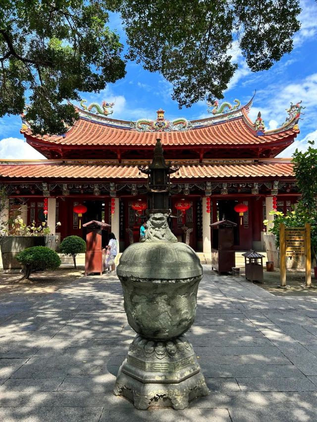 这里也曾经是弘一法师讲经弘法的地方,山门壁柱有弘一法师题联:“有无量自在,入不二法门。”寺内也可以觅见“弘一法师化身处”。但更值得去的是化身处后的小山头,静坐阅读,让人流连忘返。你也可以坐在大榕树下发呆,听着细微的诵经声,闻着渺渺的香火味,让浮躁的心沉淀。无疑,承天禅寺是个静心小憩的好去处。