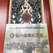 弘一法师纪念馆位于鲤城区开元寺内尊胜院,陈列有我国新文化运动先驱之一、近代高僧弘一法师(李叔同)一生中的后14年在泉州生活的史料、照片、著作和墨宝。