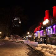 魁北克城古城区分为上城和下城,上城是整个古城的防御,城堡都在上城。下城的街道比较繁荣,这里有最高的壁画,冬天的魁北克城像一个童话世界,大大的圣诞树挂满了皑皑白雪。夏天时候的椅子到了冬天与雪齐平,这里拥有法兰西的浪漫。