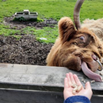 △抵达瓦尔特峰高地牧场后,可以近距离观看和喂养农场动物,参加剪羊毛表演和牧羊犬表演