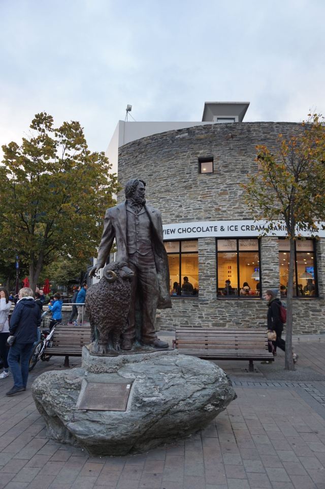 一是威廉和美利奴羊的雕像。威廉-吉尔伯特-瑞斯是第一批到达皇后镇地区的殖民者,在皇后镇建起了第一幢建筑、发现了第一个金矿、引进了第一批美利奴羊。为纪念他的功绩,后人在皇后镇的最中心、建起了这座雕像,必须打卡留念。