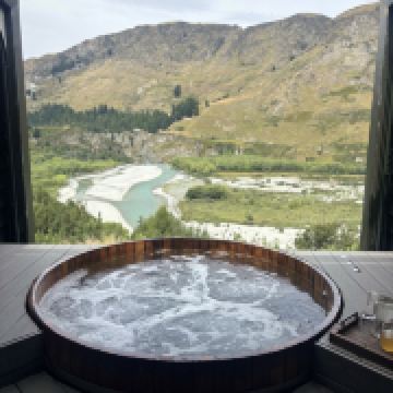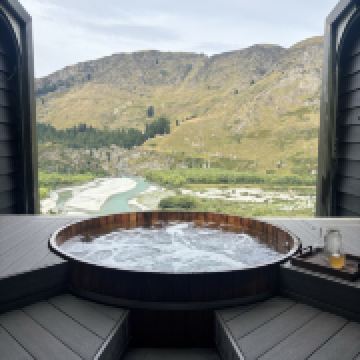 昂森木桶温泉建立于高山悬崖边,与沙特欧瓦峡谷及雪山对峙,在此你可以欣赏到令人窒息的山景,也能够俯视沙特欧瓦湖(Shotover River)上奔驰的喷气快艇。昂森木桶温泉水温常年保持在37.8度或39.8度,也可以按照你的喜好调节。伸指轻触按钮,更可以打开或关闭屋顶的雨棚,在晴朗的天气仿佛置身于户外温泉,可以欣赏到漫天繁星,在雨天亦不会淋到。