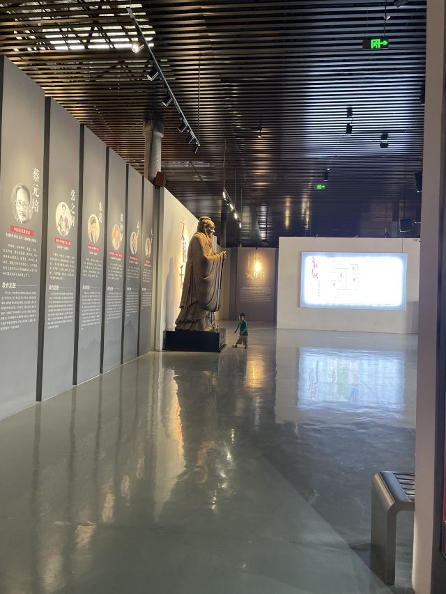 现展馆面积8千平方米,为中国教育通史馆,分为四个章节,第一章节“庠序千年”,通过文物与文字相结合的形式,以历史年代为顺序系统介绍中国古代官学、私学教育的发展与变迁;第二章节“救亡图存”,主要展览古代教育向近代教育的转变;第三章节“兼容并蓄”,主要展览民国时期的教育改革;第四章节“教育复兴”,主要展览的是新中国成立后各级各类教育蓬勃发展。通过这四个章节,系统展示中国教育的发展的变迁,带领游客重温教育千载文脉。
