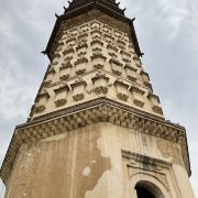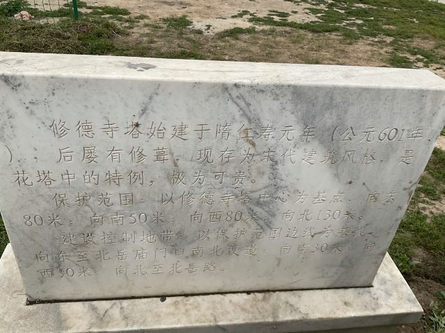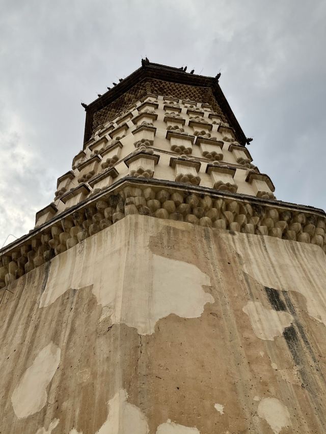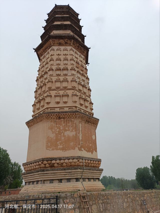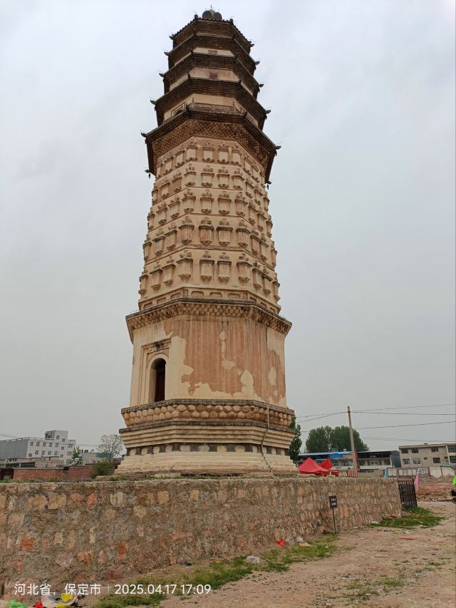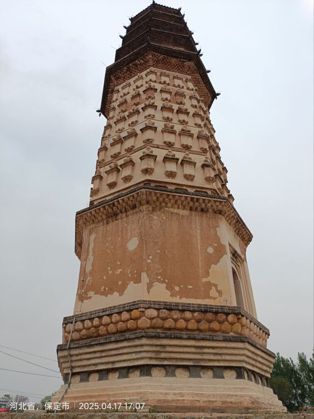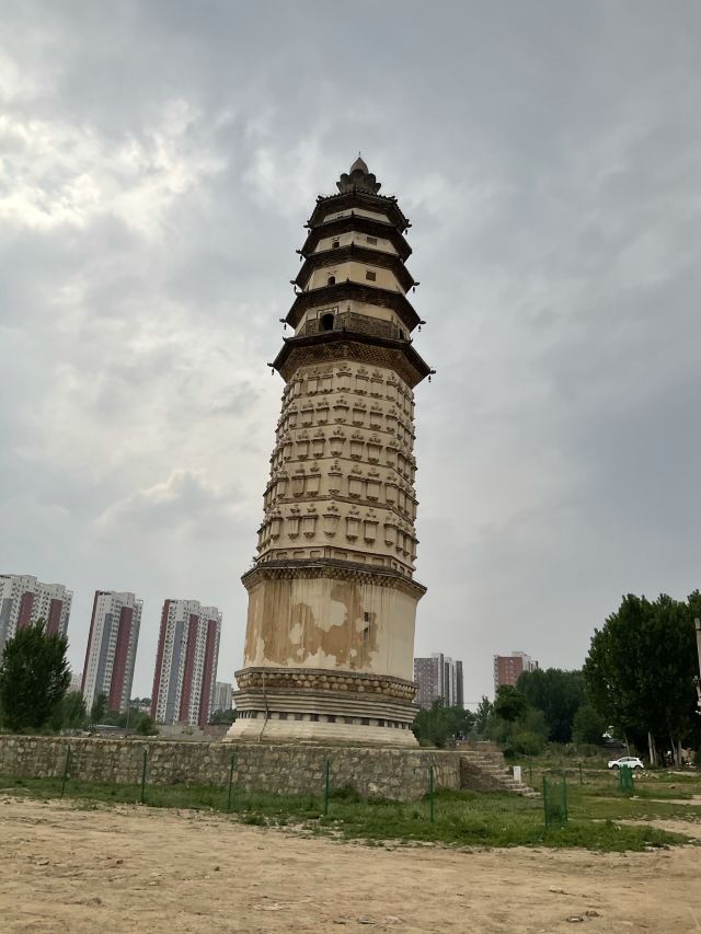 5分 超棒距离北岳庙300米左右,本想着去那里坐会边休息边好好欣赏一番,结果去了发现都是土地看了不到15分钟打道回宾馆,背着10多斤的背包溜达了一下午疲惫至极。刚到感觉塔好丑,头小脖子长,但越看越变得顺眼起来了,身材挺拔,新颖别致。百度了一下说此塔隋(601)始建,不过后多修缮,现存结构为宋天禧三年(1019)所建。近几年应该也草草了事保护了一下子,没有很久远年代感的破损。塔刹刹座为砖砌蕉叶,远望像一朵大莲花。第一层可以看到木门里面中空为塔心室,花塔脖子(实心)之上几层也开着劵门应该也是空心的。百度说这里发现了地宫还出土了不少,我觉得北岳庙里展出的可能就有那里的东西。
