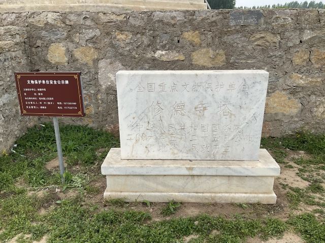 据县志记载,该处原建有修德寺,今寺院已毁,仅存遗址和修德寺塔一座。该塔创建于隋仁寿元年,是隋文帝颁赐舍利之塔。后于宋、明时期重修,现存塔为宋代建筑风格。