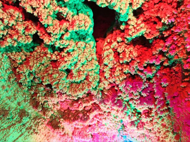 据地质专家考证,聚龙洞的形成源于地下水对可溶性岩石的长期溶蚀。经过亿万年的沉淀,碳酸钙不断析出,形成了千姿百态的钟乳石、石笋、石幔和石花。这些天然雕塑在灯光映照下流光溢彩,仿佛进入了一个梦幻的水晶宫殿。