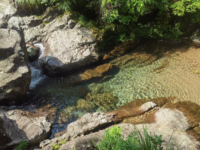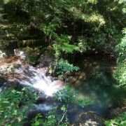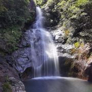水流从10多米高的悬崖上直泄龙潭,银花四溅,水声隆隆;潭中碧波荡漾,清澈见底,水质醇厚,置钱币于水面,久而不沉,十分神奇。