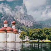 国王湖是德国最深的湖泊,位于德国和奥地利边境的小城贝希特斯加登南方5公里。这个狭长的优美湖泊被群山环绕,湖面形状瘦长,好似北欧的峡湾风貌。该湖因其碧绿且清澈见底的湖水而闻名,它被认为是德国最干净、最美丽的湖泊之一。最佳出游时间是夏季,湖的两边高山巍峨耸立,长满绿树,一幅世外桃源般的风景。冬季受限于天气条件,很多美景无缘观赏,但如果遇到雪天,银装素裹之下也别有一番风味。游览这片湖最好的方式是乘船游湖,由于对水质的保护十分严格,这里运营的船只都是电动或手划的。从KönigsseeSeelände码头出发,游船会经停三站,分别是Kessel、St.Bartholomä及终点Salet,建议去程坐在船的右侧,回程坐在左侧,可以看到更好的风景。在第二站St.Bartholomä下船可以游览漂亮的红顶教堂——圣巴尔多禄茂教堂。而在终点站下船再步行一小段路还可以去欣赏内湖Obersee以及Röthbach瀑布。登耶拿峰俯瞰该湖,耶拿峰(Jennerbahn)位于湖的东侧,登顶可以俯瞰其全貌,并将远处的贝希特斯加登镇和阿尔卑斯山区的湖光山色尽收眼底。耶拿峰缆车站距离景区入口码头处不远,搭乘缆车即可轻松登顶,你也可以选择在中间半山腰处下来,再步行登山。