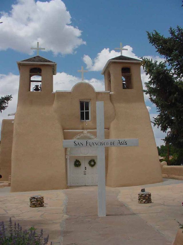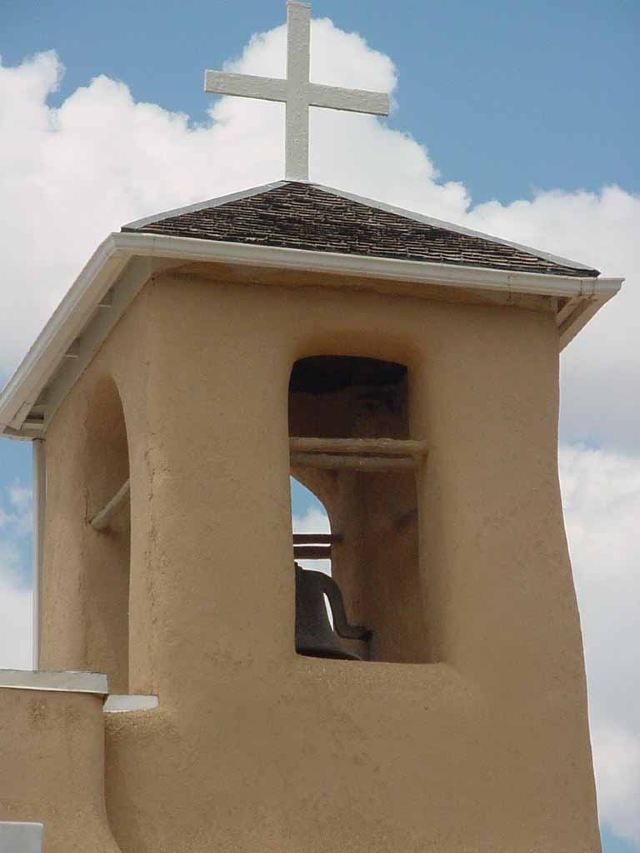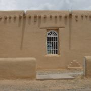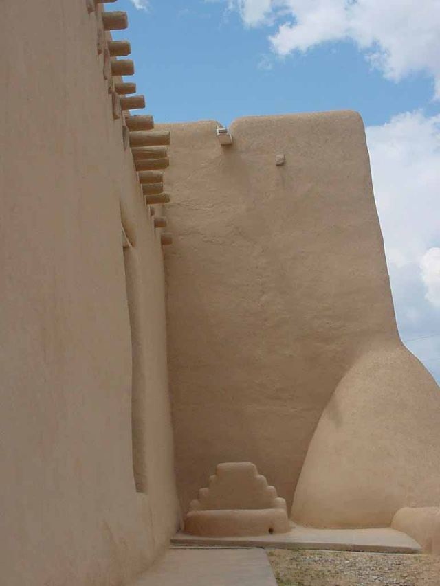 教堂是一个大型土坯结构,是新墨西哥州西班牙殖民教堂的典范。