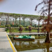 4分 满意升级改造中,绕湖半圈设施有些老,散散步看看田野闻闻花香听听鸟语也算不枉一游。山庄外的农家乐吃顿饭也算圆满。