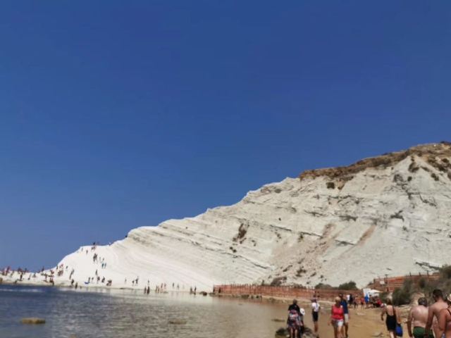 土耳其阶梯是离西西里岛西岸阿格里真托(Agrigento)15公里远的一片海滩,这里有别处不可得见的奇异白色石崖,海滩因其不一样的悬崖颜色而闻名,仿佛台阶一般,因而美名流传。