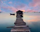 热浪岛北方的心形海湾内是绵延250米的沙滩,这里的沙质绵细柔软、纯净白皙,素有"水晶沙滩"的美名。白色的沙滩在清澈的蓝绿色海水映衬下显得格外纯净洁白,每至夕阳西下黄昏时,与海岸线上的艳丽晚霞相互辉映,随手一拍即是一张美丽的明信片。