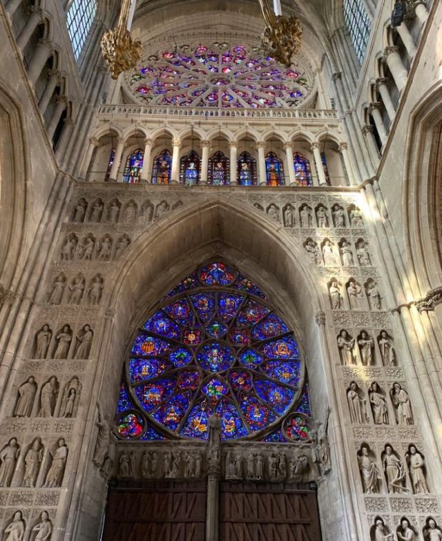 游客可以在教堂内欣赏到精美的彩色玻璃窗,这些窗户不仅是艺术珍品,还生动地讲述了圣经故事和历史事件。教堂的正立面装饰有大量雕塑,展示了圣母玛利亚和其他宗教人物的形象,细节之精致令人叹为观止。1991年,兰斯主教座堂被联合国教科文组织列为世界文化遗产,进一步肯定了其在历史和艺术上的重要地位。
