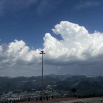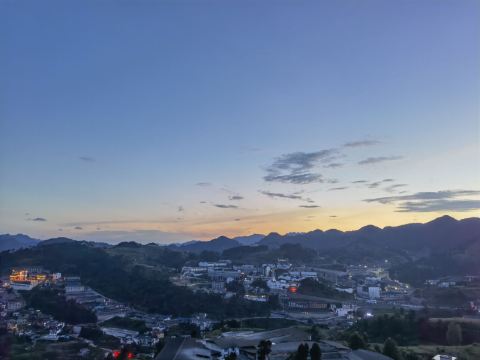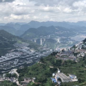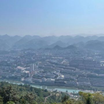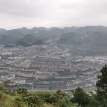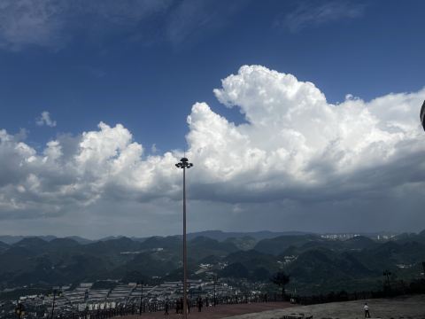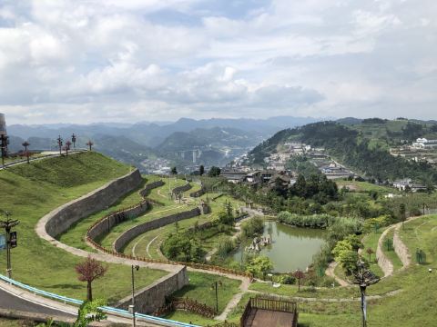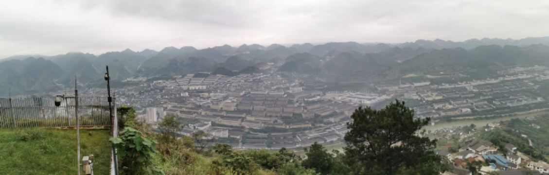 3、观景平台位于古镇西山高处,如云海上的孤岛,四周山丘连绵,喀斯特地貌尽收眼底。