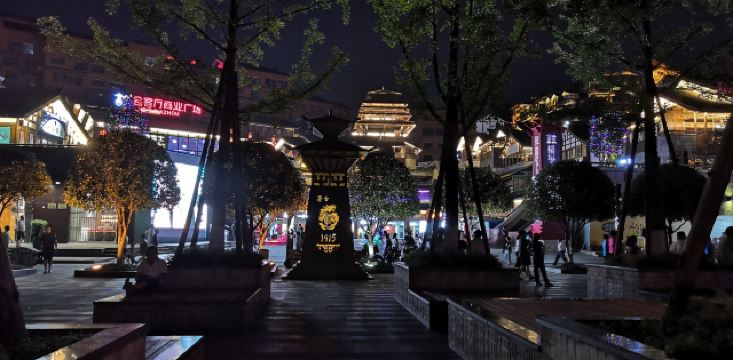 赤水河北岸的步行街是茅台镇最繁华的地方,在那边有一个1915广场,本是为纪念茅台酒在1915年巴拿马万国博览会荣获金奖而修建,广场里随可见茅台镇的文化历史。