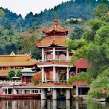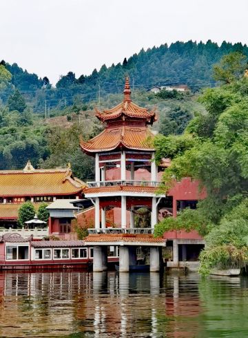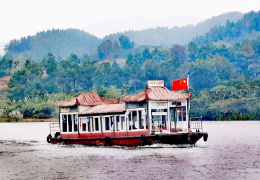 2.时间和价格:全天候,但船只开放时间有区别,码头那里两种船,一种是游船,刚在入口就可见卖票的,这种坐的是加盖的公园游船,票价50,可以游湖大概1个多h,收船估计晚六点;一种是不理他们,直接走到尽头水边,有当地居民往返湖对岸的不加盖的摆渡船,票价是2元还是多少,距离不长,收船大概八九点吧,到了对岸就是黑龙滩这个部分主景点之一黑龙宝塔所在的报国寺。我这么一说你就明白了,非必要不用花那个钱去吃坑。前提是你不想长时间游湖,因为加盖真没啥意思。