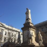 达芬奇雕像坐落在斯卡拉广场,毗邻斯卡拉歌剧院。由意大利雕塑家皮耶特罗·马尼于1872年创作,以纪念文艺复兴时期的伟大艺术家和科学家莱昂纳多·达芬奇。雕像高大雄伟,达芬奇身着典雅长袍,神情专注,四周环绕着他的四位弟子,象征着他的影响力和传承。游客可以近距离欣赏雕像细节,感受其艺术魅力。广场环境优美,适合漫步和拍照,雕像与周围建筑形成和谐景观。附近有多家咖啡馆和餐馆,提供意大利美食,是休憩和品尝当地风味的好去处。雕像地处米兰市中心,公共交通便利,地铁和公交车站距离广场仅几步之遥。建议游客参观雕像后,游览斯卡拉歌剧院和周边购物区,体验米兰的文化和时尚氛围。无论是艺术爱好者还是普通游客,这里都值得一游。