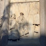 4分 满意在马力诺宫正门的斯卡夫广场,可以好好欣赏在中央位置的达芬奇雕像。它由皮埃特罗·马尼经历两年的时间雕刻而成,整个基座是花岗岩。由意大利国王伊曼纽·维多利亚女王二世于1872年捐赠。关于列奥纳多·迪·皮耶罗·达·芬奇,我们最熟知的当然是他艺术家的身份。《蒙娜丽莎》《最后的晚餐》等名作都是出于他的手笔。在看过关于他的传奇故事之后,知道他除了是一位杰出的艺术家之外,还是一位科学家、工程师和发明家。简直就是一个带着近乎神圣的光环的天才化身。达芬奇曾有十余年的时间米兰工作。除了他最著名的壁画“最后的晚餐”,还有斯福尔扎古堡天轴厅等等的成果。后世人们在这个纪念碑前瞻仰,无时不会想到他在米兰期间取得的巨大文艺成就。雕塑脚下四个角的人像分别是他的四个得意门生。正面右下角的他最有名的学生,首席弟子马可· 达·奥焦诺(Marco d’OGGIONO,1470-1549)。复制了老师好几张《最后的晚餐》,现保存于英国、德国、俄罗斯等国的博物馆。左下角的是萨雷·达·萨斯托Cesare Da Sesto。细心观察,还有雕刻了达芬奇和弟子相处的情景画。