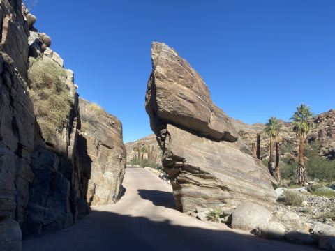 5分 超棒Have visited this beautiful canyon location several times. There is an admission fee but it’s reasonable and well worth the price. We’re a retired couple but still active and love to walk. There are a number of trails throughout the canyon that offer a number of choices for every level (easy, moderate or challenging). We’ve hiked the easy trails in both Murray Canyon and The Trading Post. Both areas have ample parking and offer trails with beautiful desert and canyon vistas. We especially liked Victor trail at Trading Post. It takes you along the upper lip of Palm Canyon providing some of the best views and photographs. Lots of choices for short (2 mile) hikes or longer.