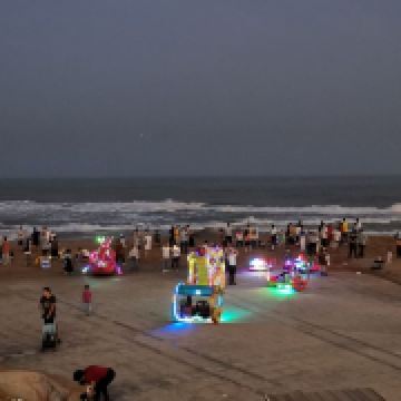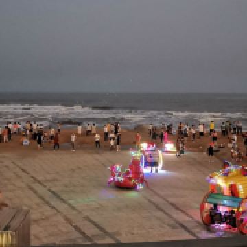这里还有大片的沙滩,虽然沙质比较粗,但非常适合拍照。很多新人会选择在这里拍摄婚纱照,留下美好的回忆。夜晚的灯塔风景区更是别有一番风味,五彩斑斓的灯光亮起,水幕在灯光的映照下如梦如幻,整个景区流光溢彩,仿佛置身于童话世界。