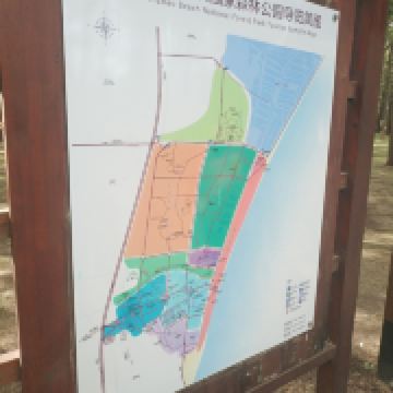 1.森林景区:位于公园管理处以东、沿海路以西,主要由水杉、黑松、雪松、刺槐等树种构成。森林景区又可分为叠翠亚区和林海亚区两部分。叠翠亚区又分为海滨春晓、林荫觅幽、采摘园、雪松园,林海亚区又分为森林迷宫和蒙古风情园。